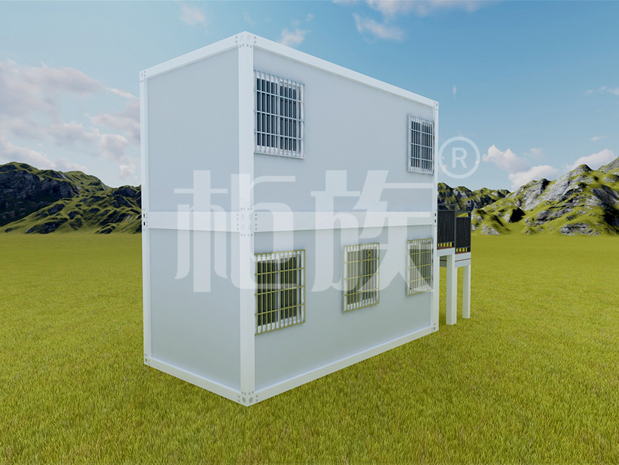 Materials: corner columns and main beams are galvanized cold-rolled steel, secondary beam is galvanized square tube, wall panel is glass wool sandwich panel, magnesium board as base of the floor, PVC decorative panel. Plastic steel window, steel door, 6 ㎡ electrical cable