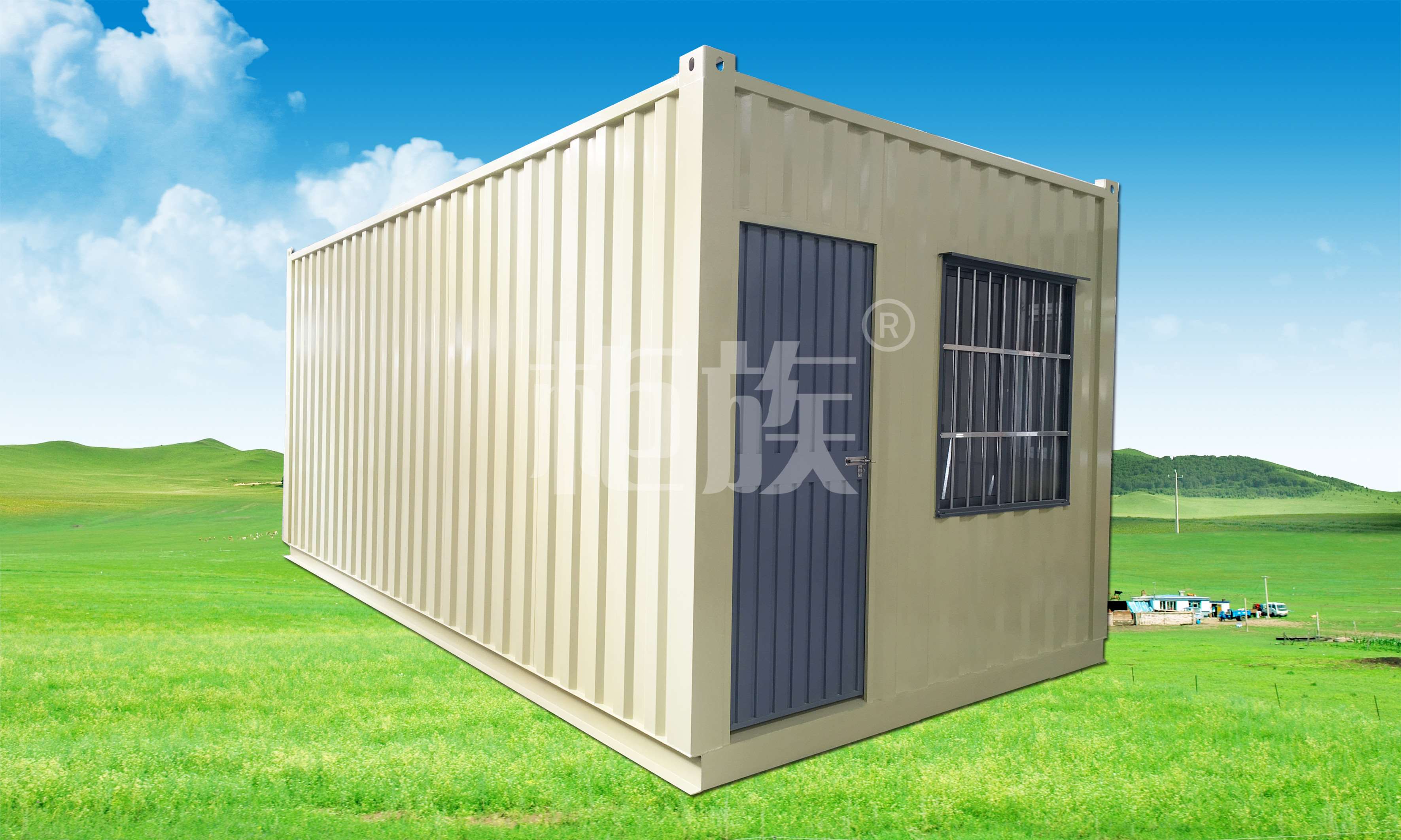 Wall panel/Top plate: exterior wall panel 0.5mm galvanized large corrugated iron plate, interlayer 50mm glass wool, interior wall 0.36mm galvanized sheet