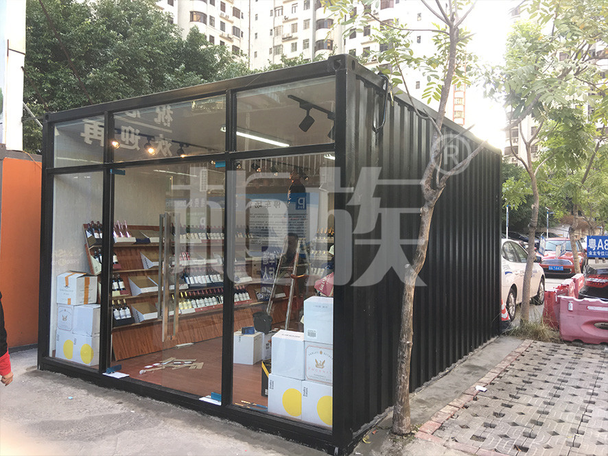 展柜外觀使用黑色噴漆,簡潔大氣。內部平面裝修,搭配射燈,視覺明凈,可以很好地將顧客的注意力吸引至琳瑯滿目的紅酒產(chǎn)品上。