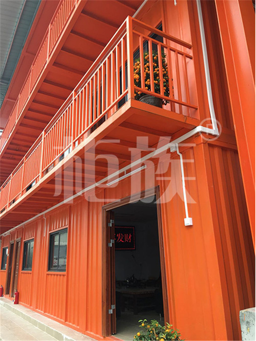 集裝箱與鋼結(jié)構(gòu)組合建筑。三層室內(nèi)面積共392平方米,辦公和居住空間都較為充裕。