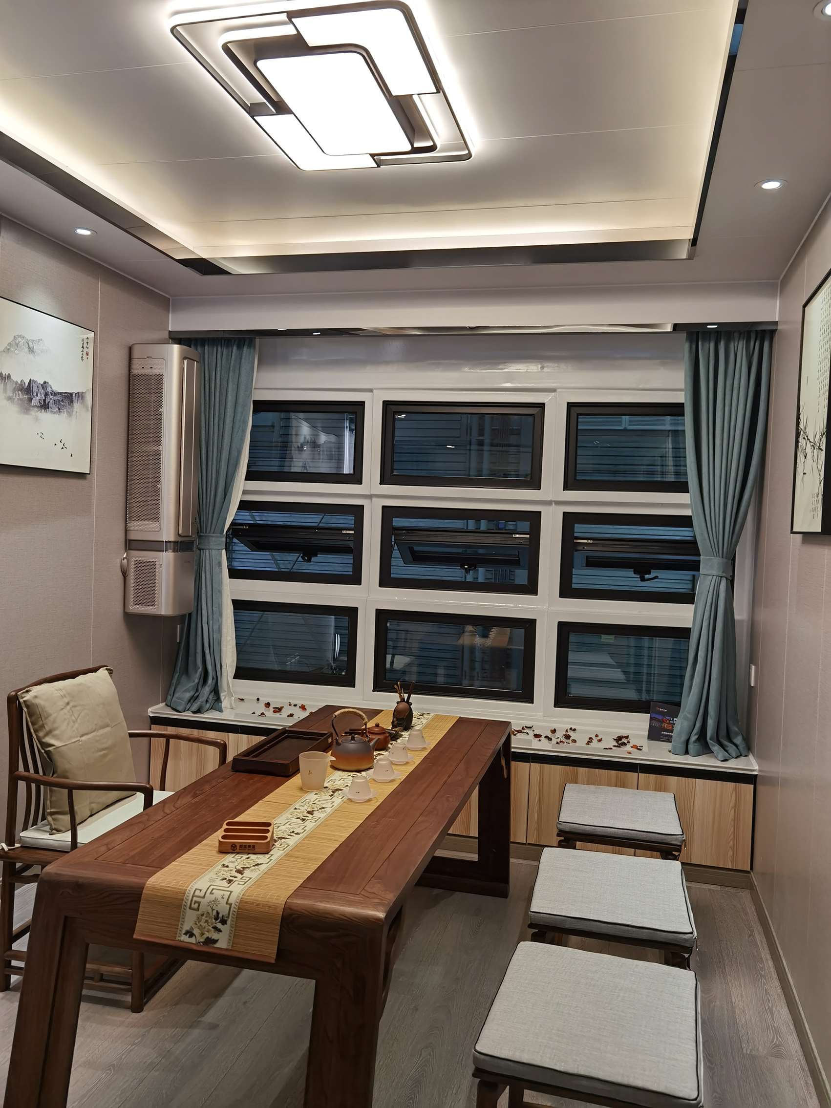 室外樓梯通往二樓,相對(duì)獨(dú)立,與主人的起居生活很好地區(qū)分開來,陽臺(tái)和茶室都是喝茶聊天的好地方,裝修雅致、燈光柔和,涼爽的天氣里,在高處看更遠(yuǎn)處風(fēng)景,更加心曠神怡。你是不是也對(duì)這們的房子心動(dòng)了呢?