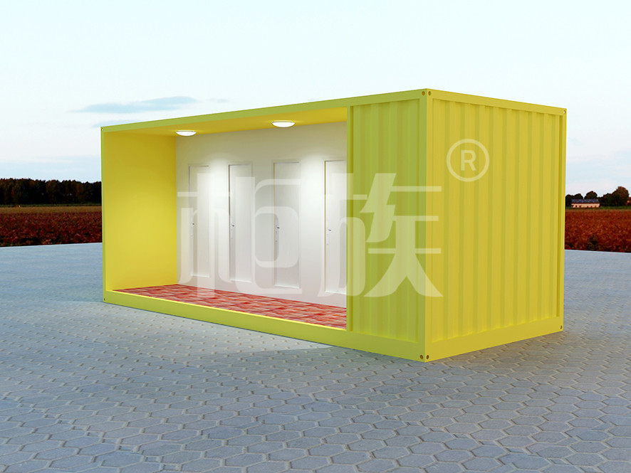明黃色的六位衛(wèi)生間,現(xiàn)場(chǎng)接通管道水電即可使用。外觀清新大方,設(shè)施齊全、功能實(shí)用。